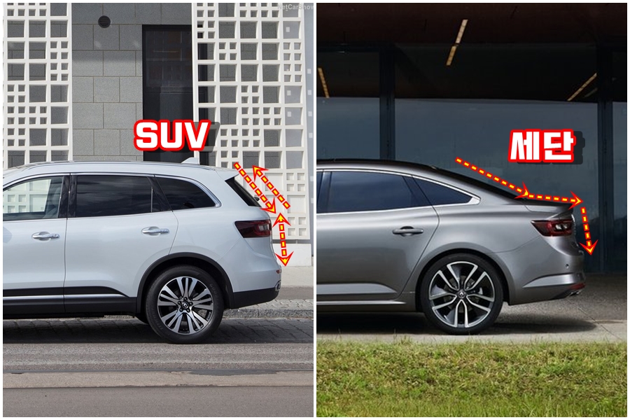 세단과 SUV 중간 디자인의 쿠페는 리어 윈도가 완만하게 떨어지면서 흙먼지가 리어 윈도에 덜 묻게 됩니다.