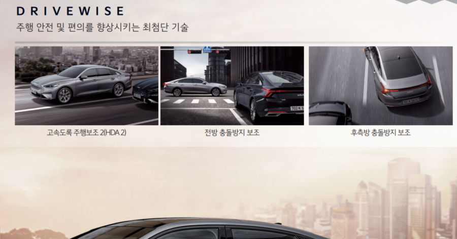 기존 LED가 제공되며, 헤드램프, 턴 시그널, 앞좌석 이중 접합 차음유리가 제공됩니다.