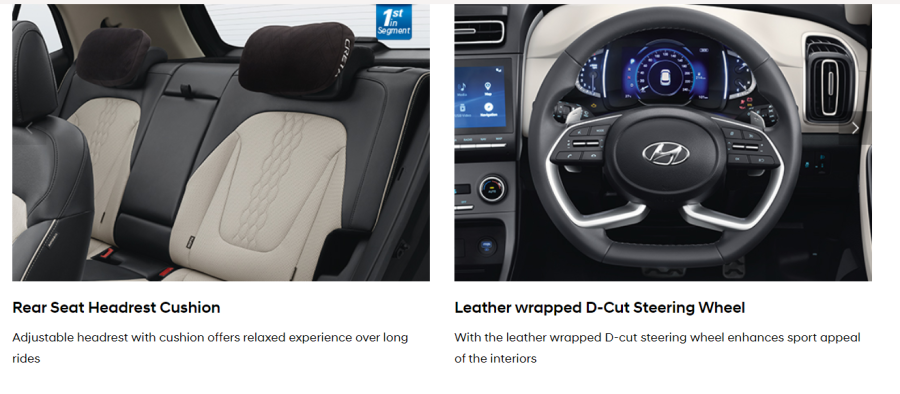 참고로 인도에서 판매하는 크레타의 경우 그랜저 캘리그래피에서 제공하는 헤드레스트 쿠션까지 제공하기 때문에 인도 시장의 성격상 국내와 다르게 고급 SUV라는 인식을 만들고 있습니다.