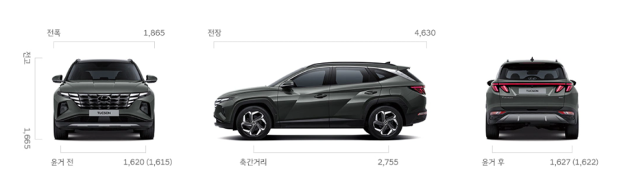 두 가지 사실을 알게 되었는데, 투싼을 베이스로 제작했지만 팰리세이드만한 차량이다! 그리고 렉스턴 스포츠와 12cm 정도 작은 사이즈다!