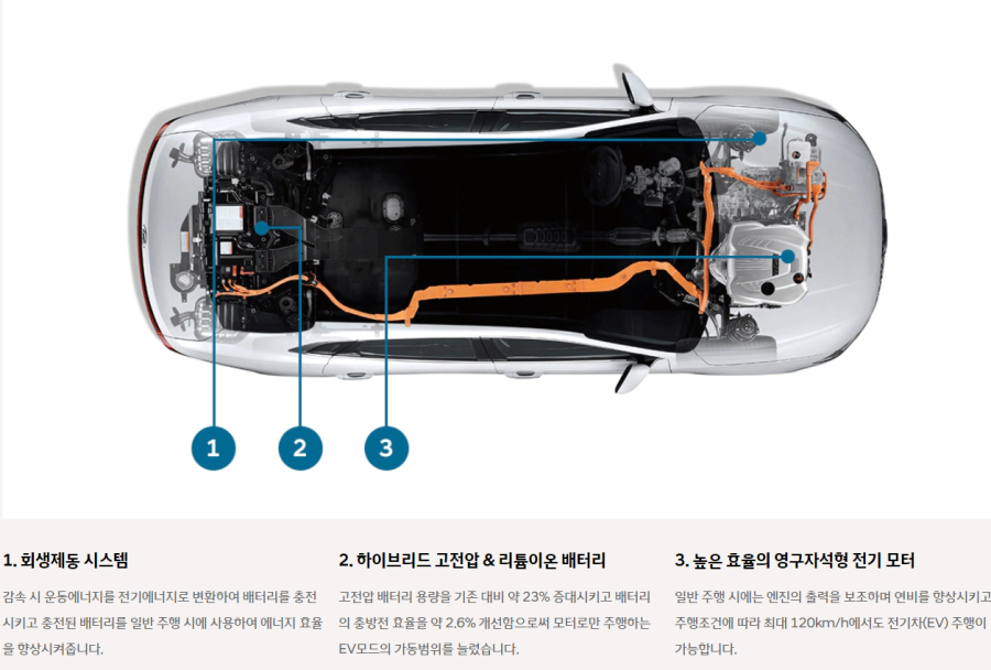 전기 모터의 용량도 38kw에서 44.2kw 수준으로 개선이 되기 때문에 합산 출력으로 본다면 230마력에 도달하며 조용하면서 강력하고, 연비까지 좋은 3박자 모두를 잡을 엔진이 될 것 같네요.