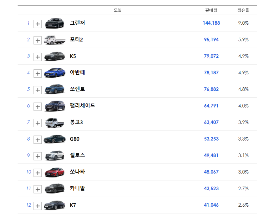 우리 나라 사람들이 얼마나 큰 차량을 좋아하는지 알 수 있는데...이렇게 알려드릴 때마다 사실 놀랍습니다.