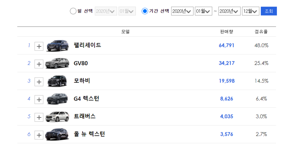 대형 SUV 시장의 판매량을 보면 팰리세이드가 6만 4천 여대를 판매했는데, 없어서 못 파는 상황이었죠? 반면 기아는 모하비로 2만 대가 안되게 판매를 했기 때문에 텔루라이드가 국내에 출시가 된다면 팰리세이드만큼 판매를 할 수 있지 않을까? 예상이 되고 있습니다.