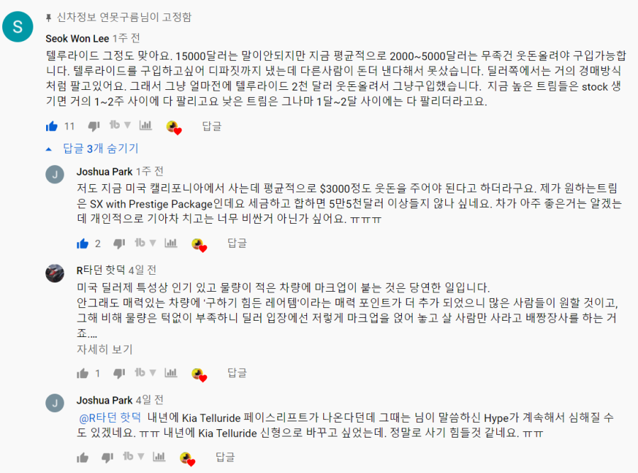 | 미국에서 웃돈주고 텔루라이드를 구입한다고? 국내 출시 가능성과 팰리세이드 페이스리프트 출시 소식! (0) | 2021.05.26 |