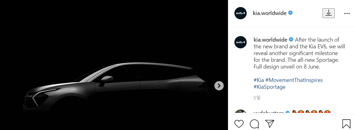 공개 일은 다음 주 화요일 6월 8일로, 인스타 기아 한국 채널이 아닌 월드 와이드라서 한국 시간 기준이라면 화요일,