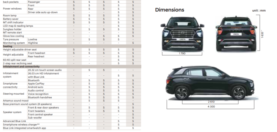 크레라의 전장은 4300mm로 베뉴 보다 크고 셀토스만한 소형 SUV인데요.