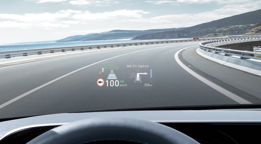 좀 더 복잡한 윈드 실드 방식은 두 개의 미러를 거쳐 윈도에 보여주게 되는 방식인데, 윈도에 가상 이미지가 더해지면서 주변 풍경과 어울려 이질감 없는 정보를 제공해 준다는 점에서 차이가 있어요!