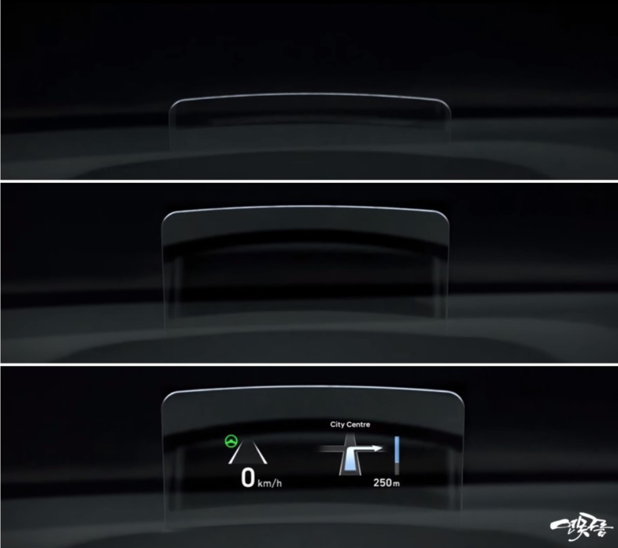 테스트 차량에 탑재된 HUD는 고급형 방식인 윈드실드 HUD가 포착되었습니다.
