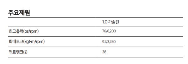 기아 모닝에 탑재한 최고 76마력의 스마트스트림 직렬3기통 1.0ℓ 엔진과 4단 자동변속기가 조합될 것으로 예상됩니다.