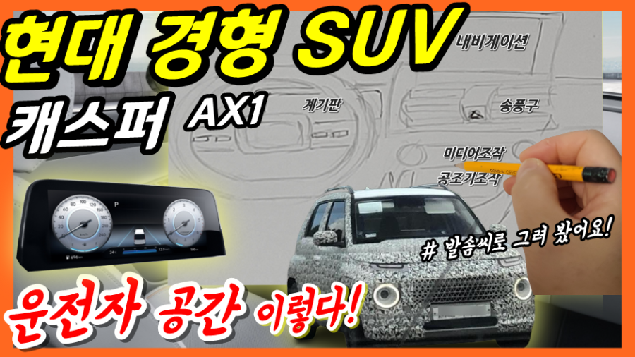 현대 경형 SUV 캐스퍼 실내! 운전자 공간! 계기판&내비게이션 이렇게 생겼어요! 그림 허접함 주의! AX1!