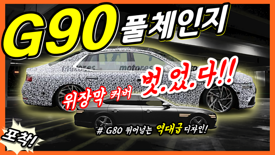 이상으로 두터운 위장막 커버가 제거된 G90 풀체인지 디자인을 알려드렸습니다.