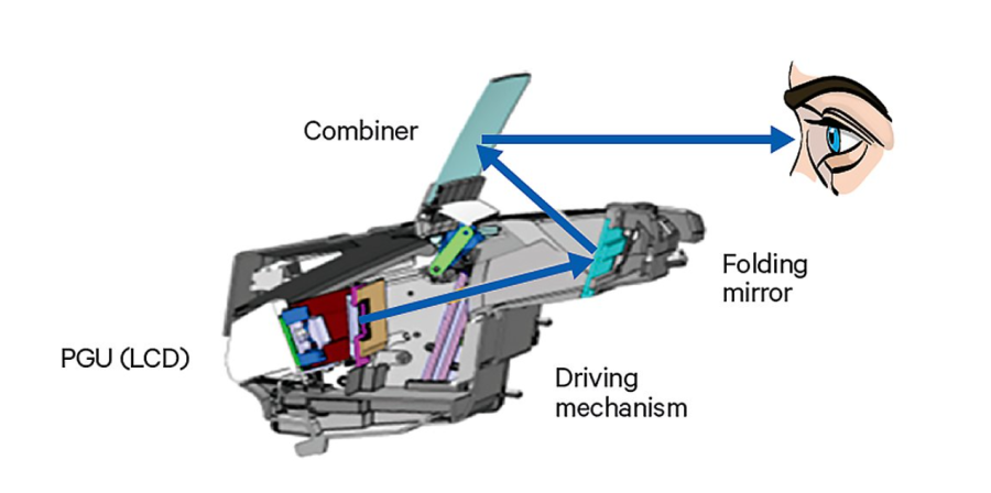 다만 윈도에 투영되는 윈드 쉴드 방식과 다르게 팝업 되는 방식인 컴바이너 타입 헤드업 디스플레이는 사용할 때마다 조작을 해야 하고, 이질감이 있기 때문에 코나 등의 차량에서 막상 사용해 보시면 기대했던 것처럼 편리함은 덜 한 것 같아요!