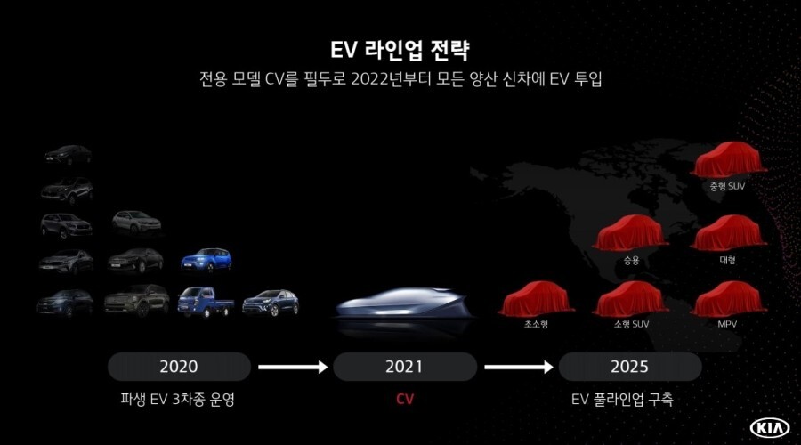 초소형 차량부터 대형과 카니발 크기의 MPV 전기차를 2025년까지 선보인다는 전략인데..