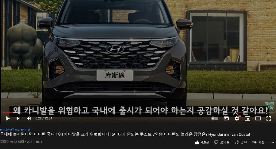 그래서 현대가 중국 시장에 선보인 미니밴 쿠스토를 이전 영상에서 알려드렸죠!