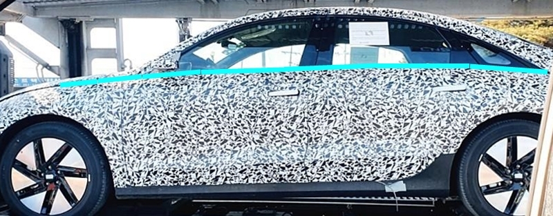 동시에 콘셉트와 비교해 보면 테스트 차량이 아래에서 촬영되다 보니 약간의 차이가 있지만