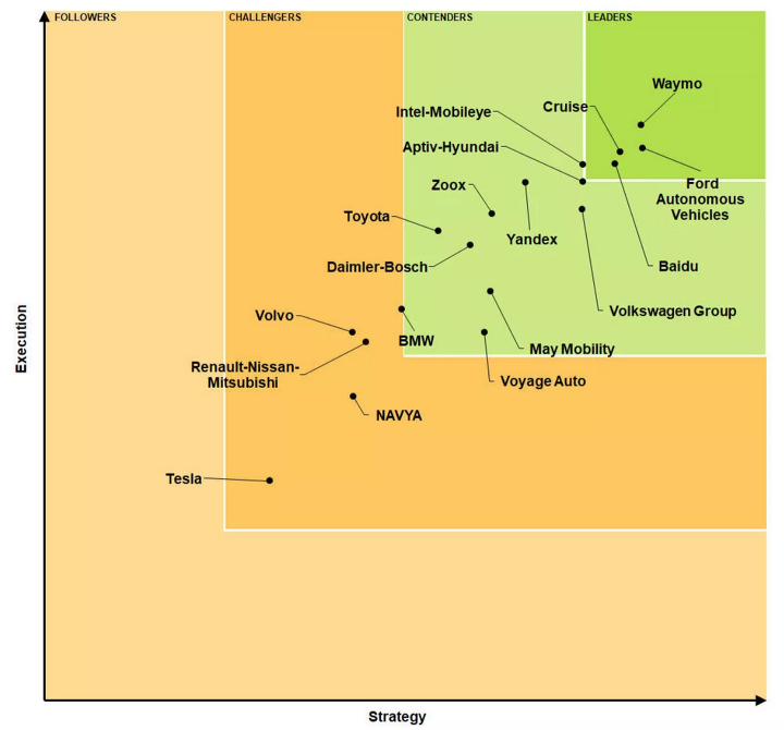 웨이모, 바이듀, 포드 등과 함께 리더 그룹으로 평가받고 있습니다.