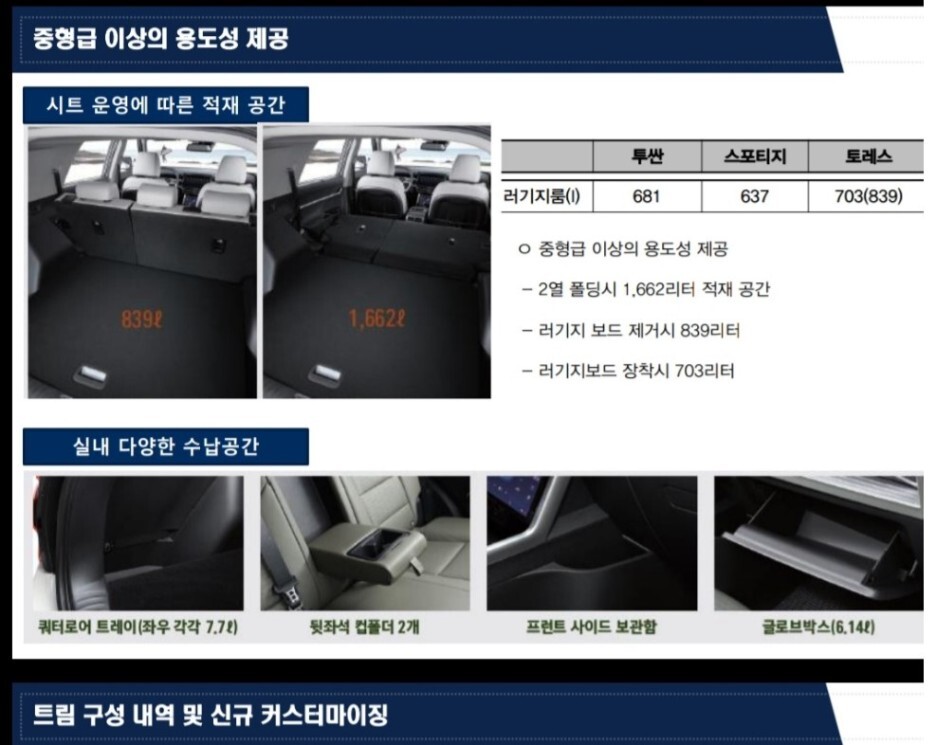 문구를 보면 준중형과 중형 SUV를 넘나드는 용도성과 디멘션이라고 표기되었네요.