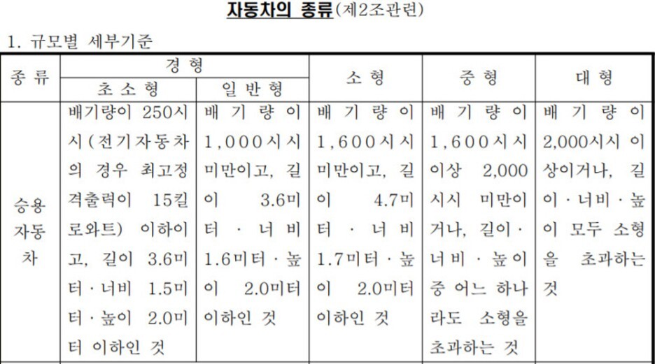 자동차를 나누는 기준은 다양한데, 무게나 적재량 그리고 크기 중에서..