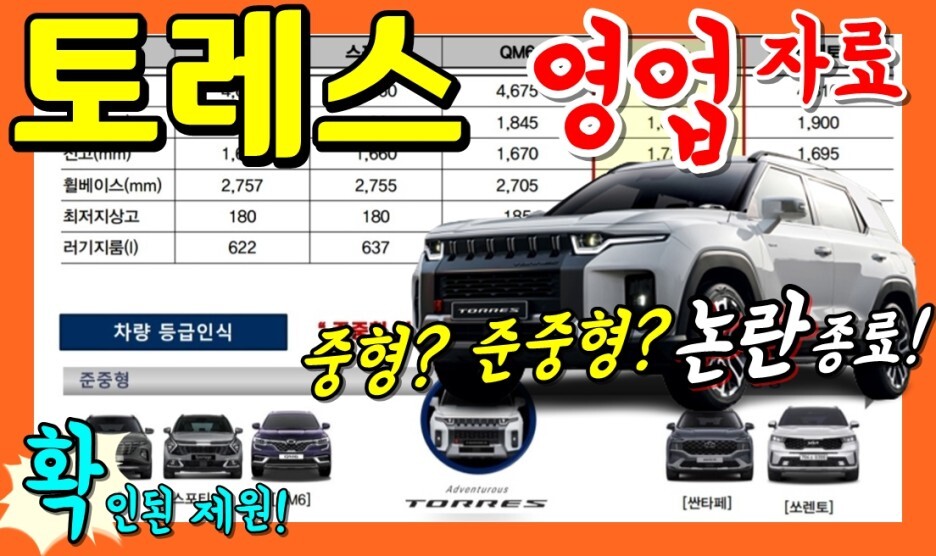 쌍용 신차! 토레스 영업자료 공개! 놀라운 반전! 부활을 위한 사전계약 시작되었다!