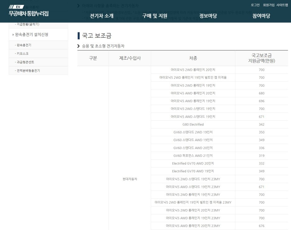 전기차는 국가 보조금과 지자체 보조금을 더한 가격이라서