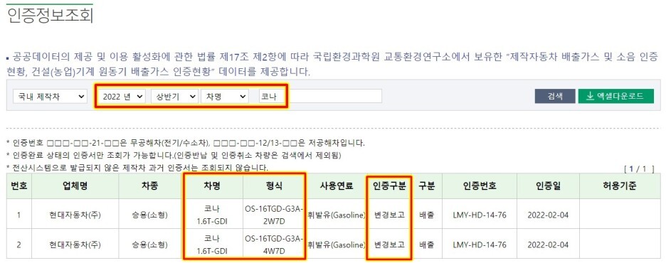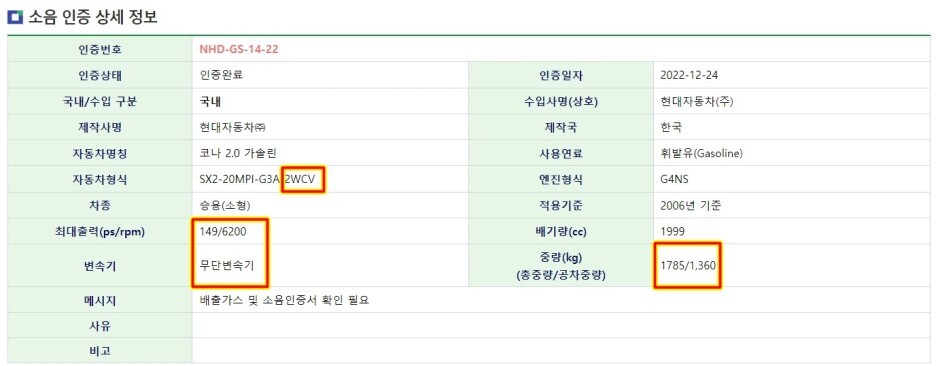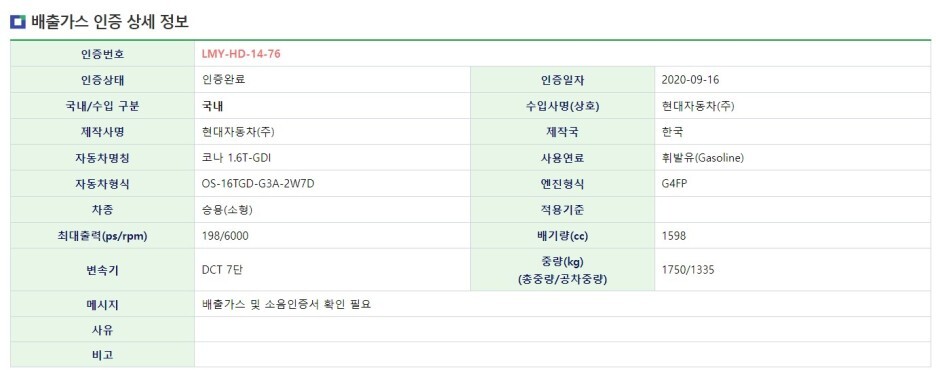 드디어 업데이트가 되었네요! 신형 코나의 인증 정보가 확인되었습니다.