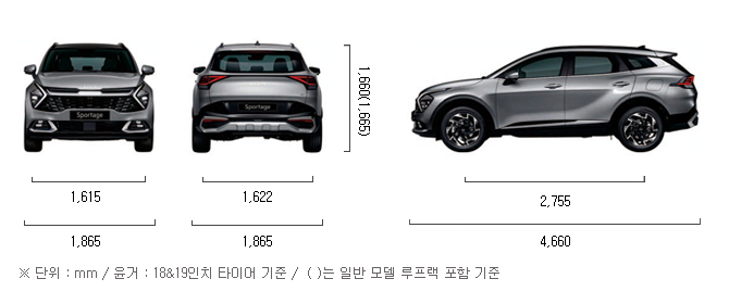 정확히는 스포티지보다 전장이 60mm가 작고 휠베이스가 5mm 정도 작지만