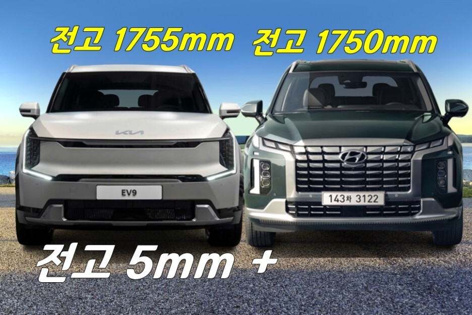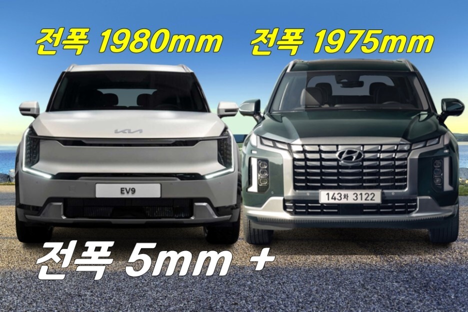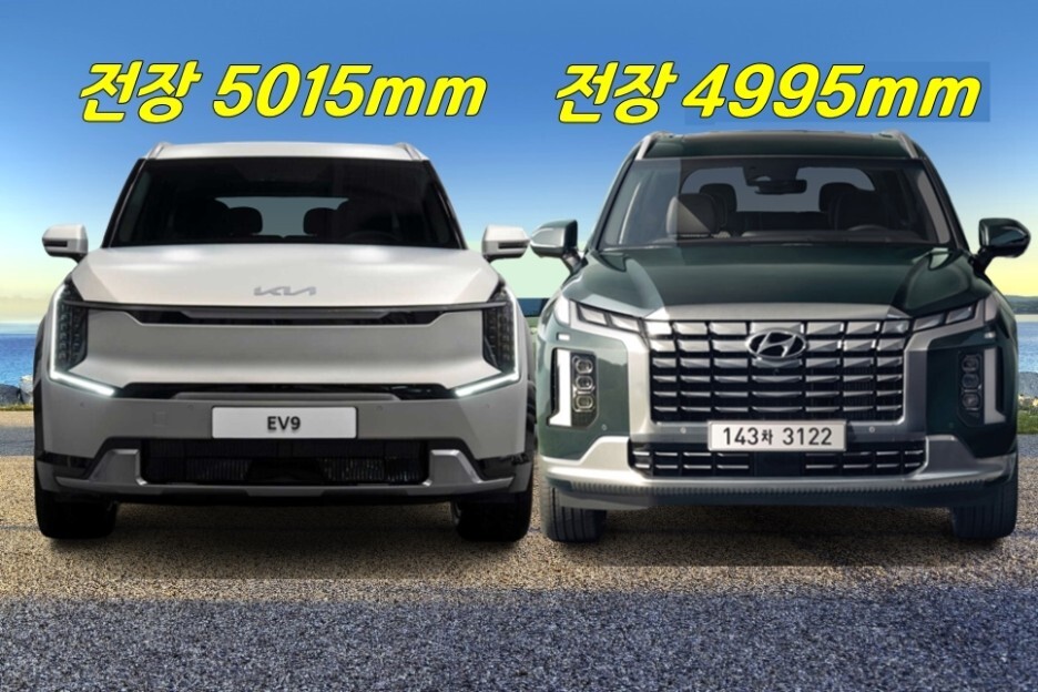 줄자의 상태나 각도에 따라서 미세한 차이가 있겠지만, 오차는 크지 않기 때문에, 전기차 EV9와 내연기관 팰리세이드의