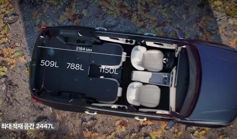 팰리세이드는 2열을 모두 접은 경우 2447L의 적재공간을 제공합니다.
