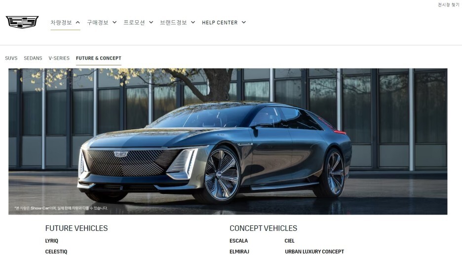먼저 국내 캐딜락 홈페이지에 들어왔는데 리릭 전기차가 준비중인 것이 확인됩니다.