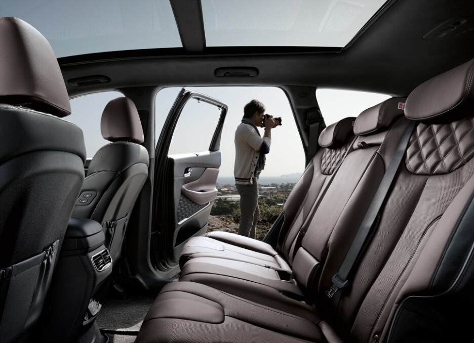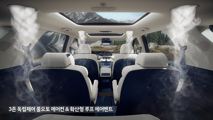 결과물일까요? 기존 싼타페에는 바닥 쪽에 위치했던 송풍구의 위치를 B 필러로 이동하면서, 기존 싼타페 보다 더운 여름에 좀 더 쾌적한 2열 공간을 제공할 것 같습니다.