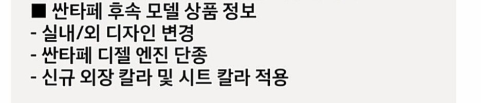 마지막으로 싼타페 후속 모델 상품 정보를 보면 실내/외 디자인 변경에 대해서는