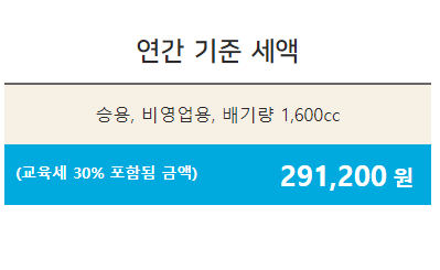 1.6 엔진인 하이브리드 연간 세금은 약 29만원입니다.