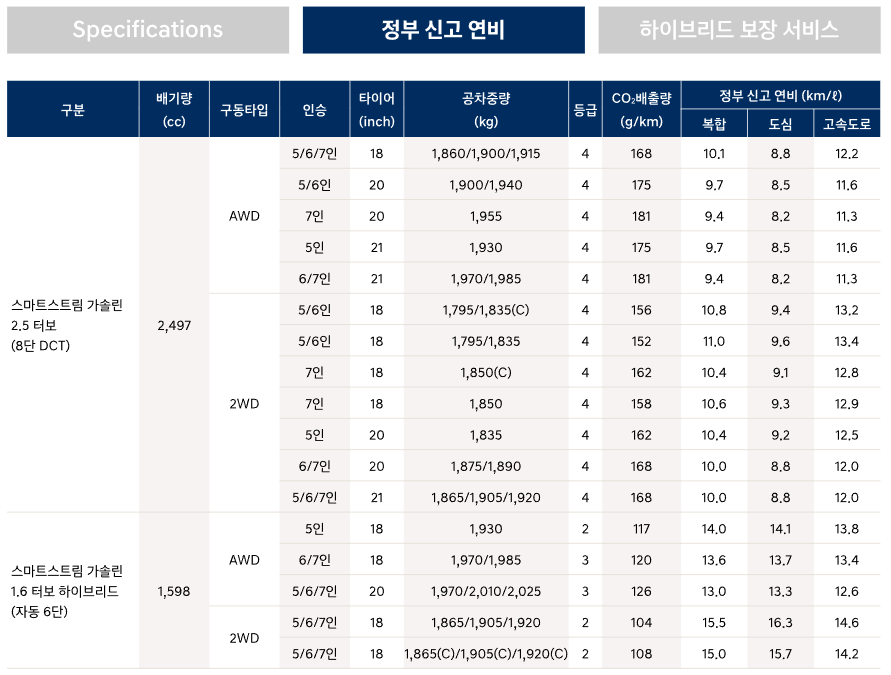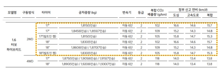 하지만 지금까지는 가솔린 차량에 대한 정보만 확인된 것인데요. 드디어 하이브리드 차량도 배출가스 및 소음 인증이 완료되면서 공식 연비가 공개되었습니다.