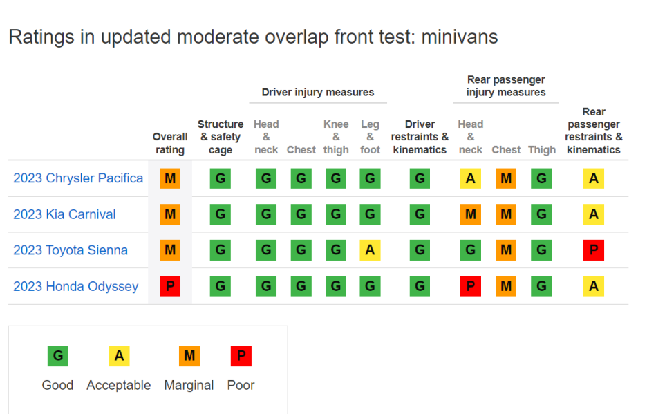 혼다 오딧세이는 가장 낮은 점수인 P 등급을 받았습니다.