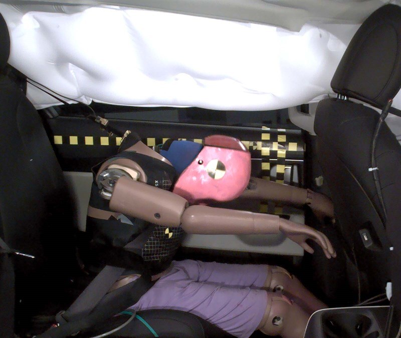 특히 충돌후에 더미의 머리가 앞좌석 등받이에 가깝게 전진하면서 머리 부상 위험이 높은 것으로 평가했습니다.
