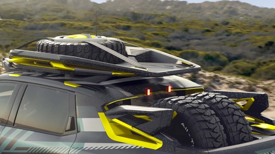 루프에는 커다란 적재함과 함께 오프로드 타이어를 수납할 수 있을 정도로 예상 보다 큰 적재공간을 제공하며, 네모네모한 8개의 서치라이트는 칠흙같은 오프로드를 대낮처럼 밝혀 줄 것 같네요!