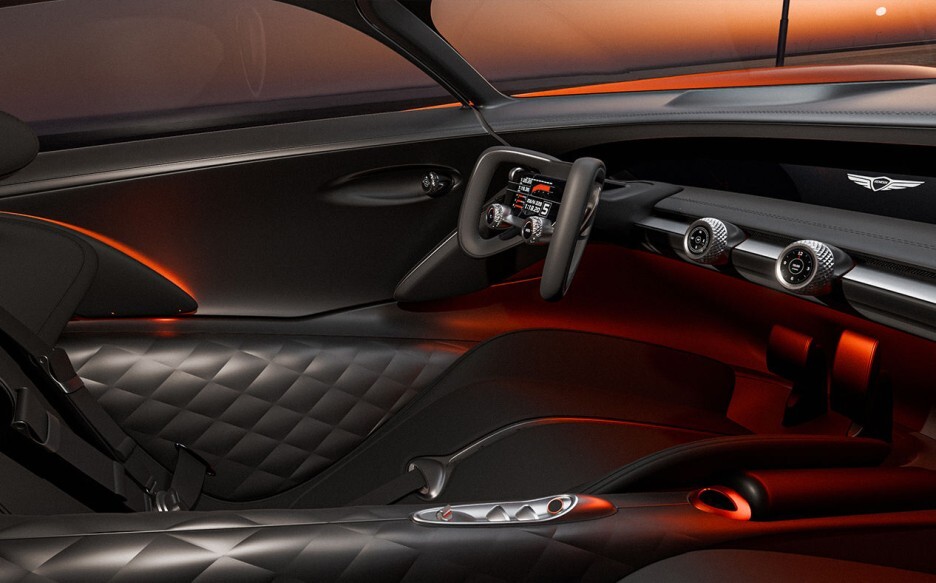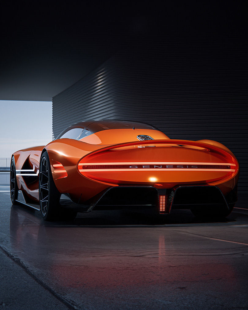 커다란 볼륨감을 만들어내는데.. X 그란 베를리네타 VGT 제네시스 브랜드의 공기역학적인 디자인을 최우선으로 설계한 디자인을 보여줍니다.