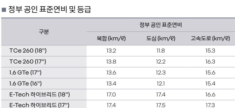연비는 일반 가솔린과 가솔린 터보가 복합 연비 기준으로 13km 인데 반해서, E-Tech 하이브리드는 17km 정도로 리터당 무려 4km의 차이가 발생됩니다. 어쩌면 1년 정도만 운영을 해도 가격 차이를 뽑을 수 있는 가격대가 된 것이죠!