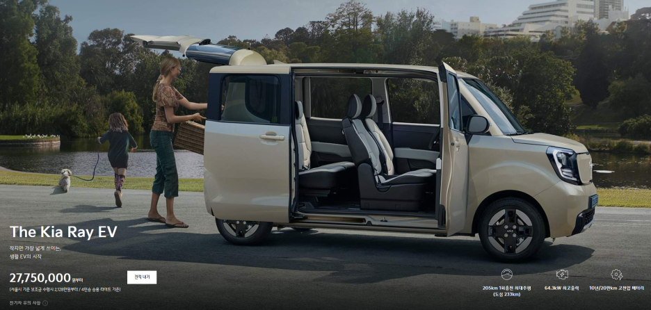 레이 EV는 2775만원에서 시작되는데.. 가격에 가장 민감한 차량이라서 큰 차이를 두기는 현실적으로 어려울 것 같습니다.