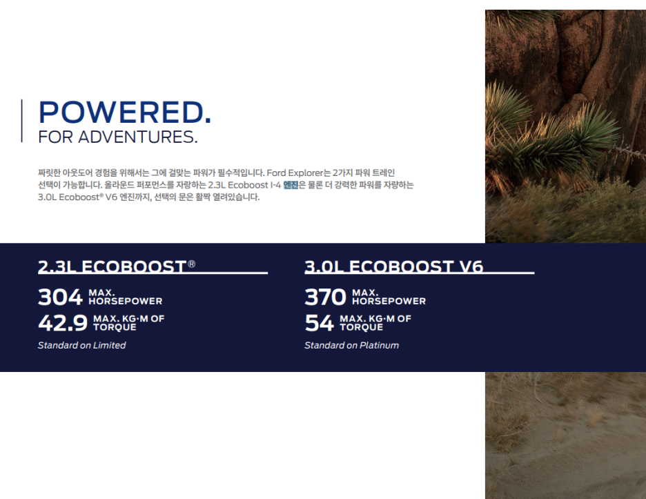 5세대 익스플로러가 국내에 높은 인기를 얻게 되었고, 익스플로러하면 이 차량을 떠오르게 만드는 것 같아요.