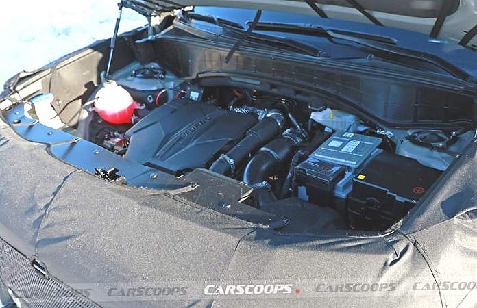 그럼 어떤 엔진일까요? 테스트 차량의 엔진은 2.5 가솔린 터보 혹스 2.2 디젤 차량으로 예상됩니다. 엔진과 베터리의 위치, 터보와 흡기구 냉각수 등이 싼타페와 쏘렌토 2.5 가솔린 터보 차량과 유사합니다.