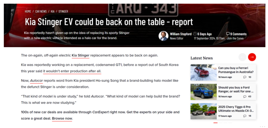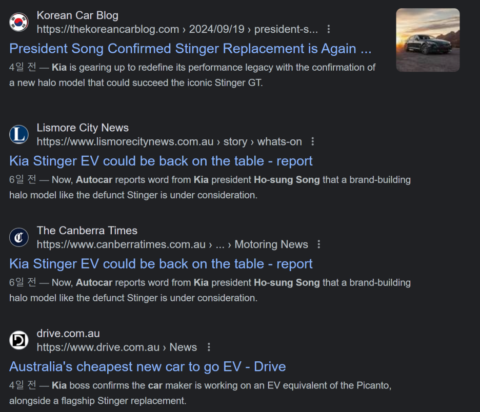 이런 루머가 언급될때 빠지지 않는 차량은 언제나 스팅어이었습니다. 그만큼 기아에게 중요한 차량이었고, 평범한 대중차인 기아의 위상을 후륜 기반 고성능 시장의 가능성까지 보여준 차량이죠!