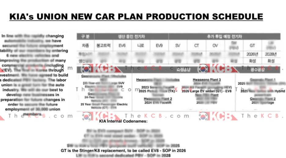 그리고 오래전에 유출되었던 자료인데 프로젝트명만 보셔도 어떤 차량들인지 아실 것 같은데 생산일정에 보면 26년도에 GT를 화성 공장에서 생산할 계획이 있었다는 것을 알 수 있습니다.