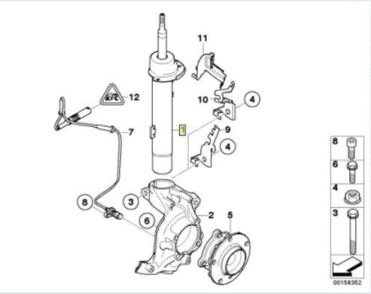 그런데 놀란점은 너클과 쇽성쇼버가 연결되는 방식이 BMW와 같은 차량에서 볼 수 있는 체결 방식입니다. 바로 이 부분인데요.