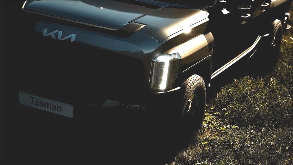 타스만 픽업트럭은 타스만 레터링 대신에 기아의 로고가 선명하게 음각으로 제공되는 것을 확인할 수 있습니다.