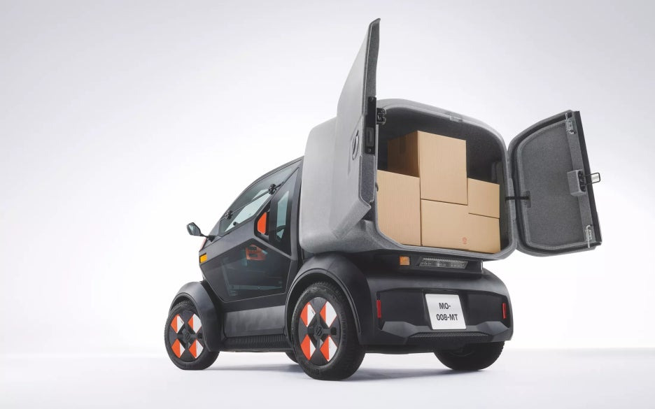 비슷해 보이지만, 2인승 차량은 뒤에 작은 창이 있으며, 르노의 최신 디자인을 형상화한 화살표 같은 포인트 디자인을 볼 수 있습니다.