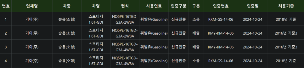 하지만 공식 출시를 불과 몇 주 앞두고 환경부 인증내용을 보면 스포티지 페이스리프트 가솔린 인증 내역에 8단 변속기가 인증 받은 내역을 확인할 수 있었습니다.