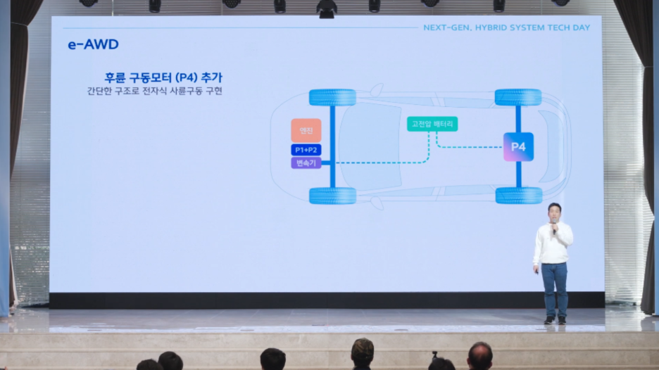 이 말은 e-AWD 기술이 새롭게 들어갈 차량은 기존 하이브리드 시스템 방식이 아닌, 차세대 하이브리드 기술이 적용된다는 말입니다.