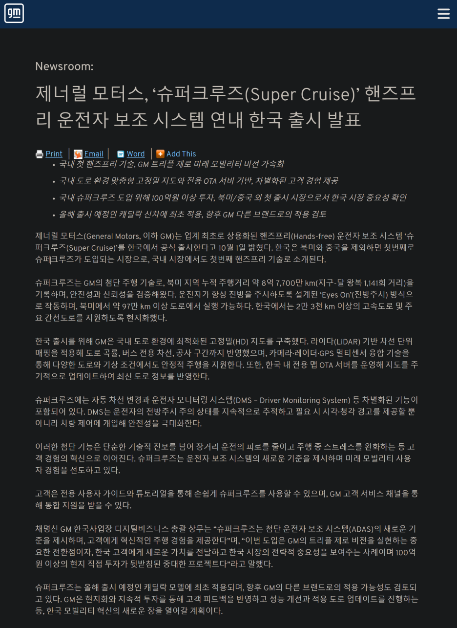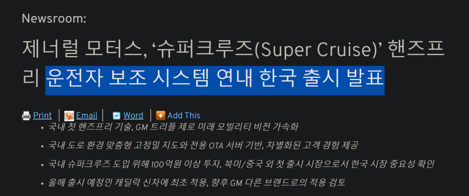 이후 출시되는 차량에서 슈퍼크루즈 기능은 자연스럽게 제공될 것 같습니다.
